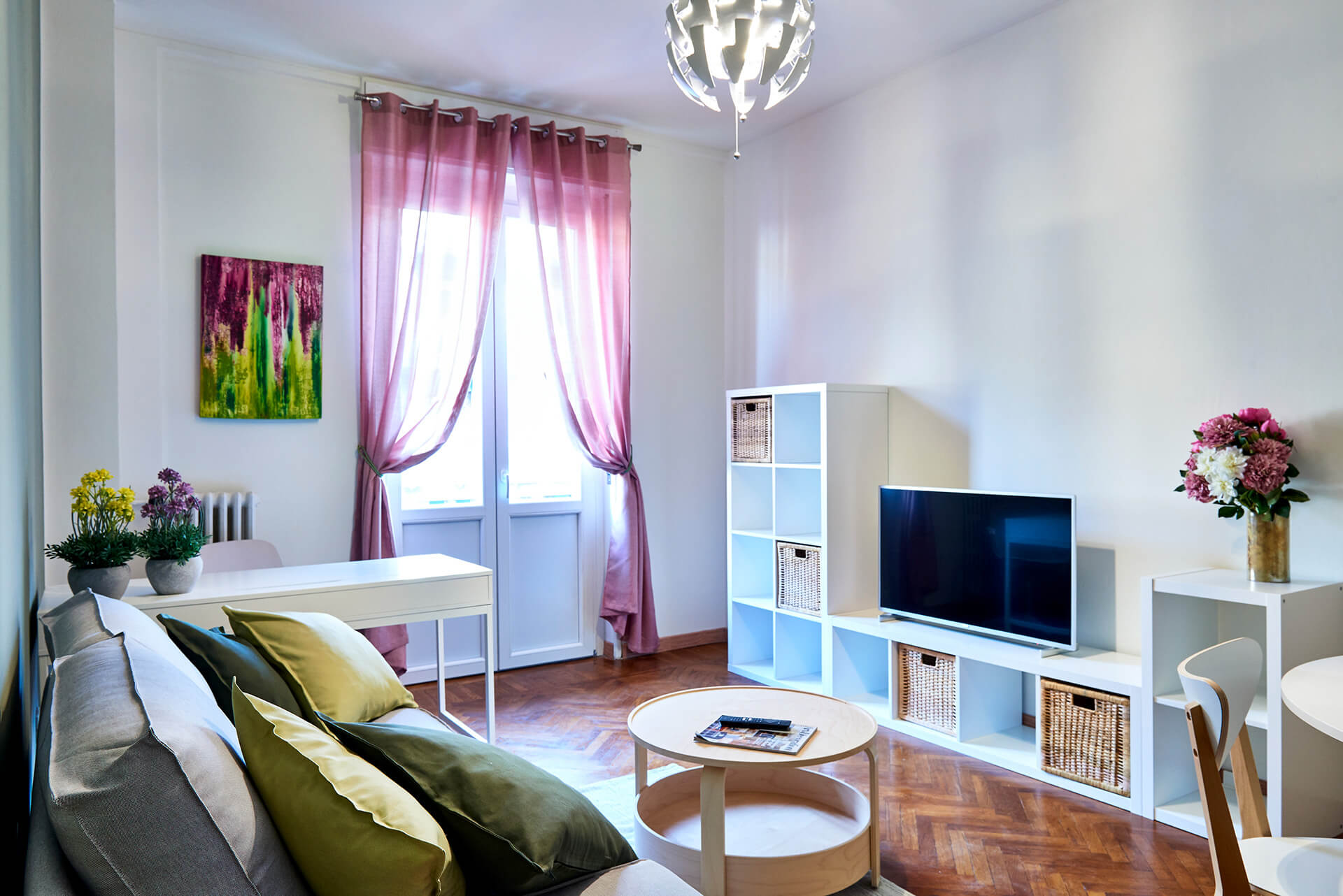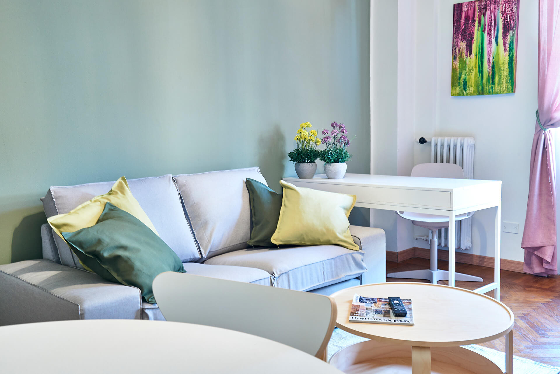 Via Mussi 5 – 4° piano Bilocale sapientemente arredati in ogni dettaglio composti da cucina, soggiorno con divano letto, camera matrimoniale con possibilità di letti singoli e bagno. Dallo stile moderno e lineare, impreziositi da tocchi di colore peculiari per ogni appartamento, le nostre soluzioni mirano a rendere il soggiorno dei nostri ospiti il migliore possibile.